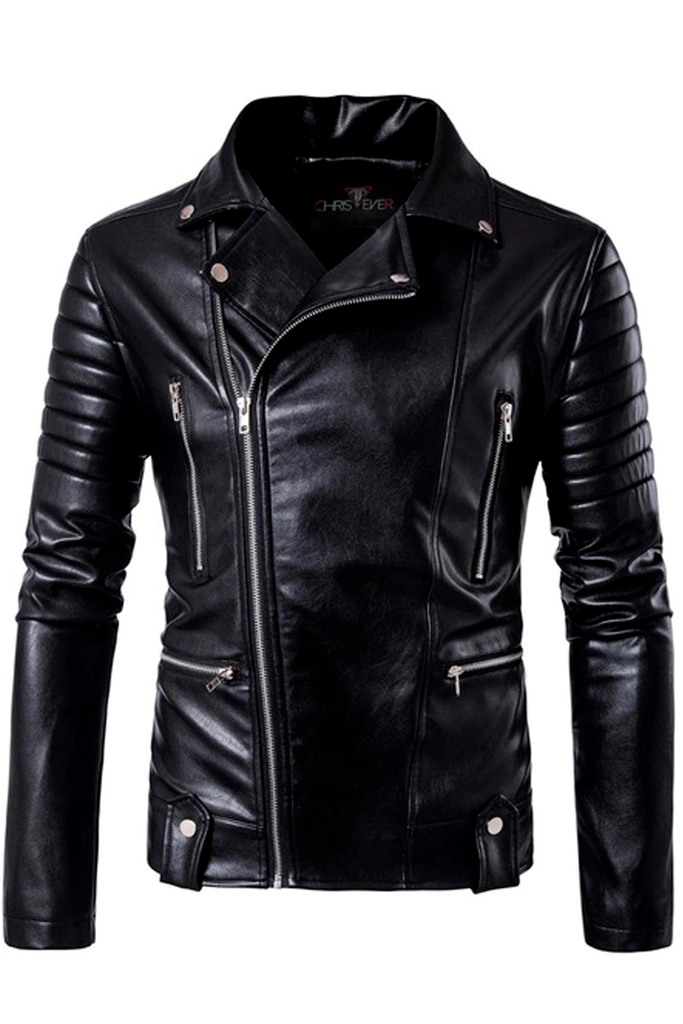 Chaqueta confeccionada artesanalmente en cuero ecologico importado de primera calidad. Color negro brillante. Forrada en tafeta 100% poliester que posee 2 bolsillos internos.